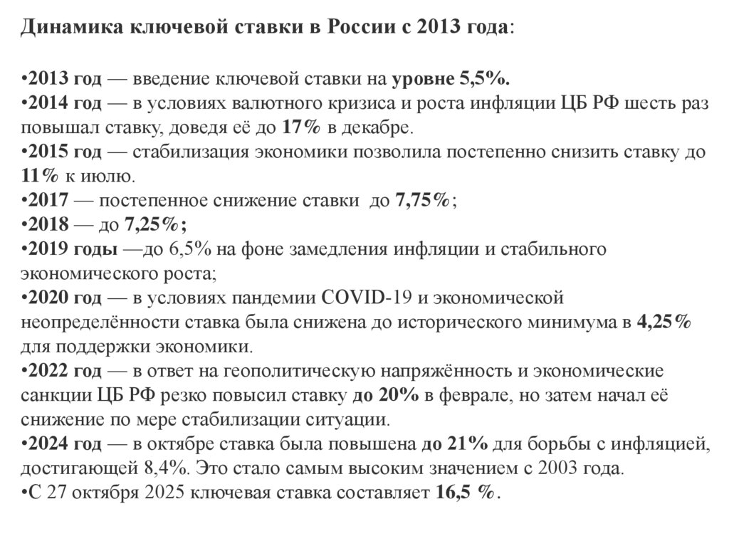 •С 27 октября 2025 года ключевая ставка составляет 16,5%