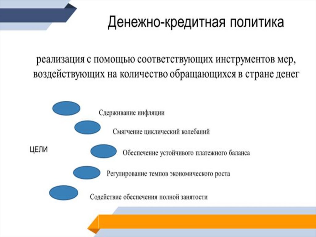 Денежно-кредитная политикареализация с помощью соответствующих инструментов мер,