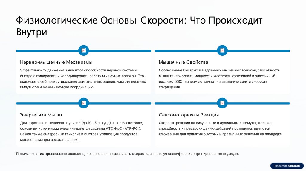 Понимание этих процессов позволяет целенаправленно развивать скорость, используя специфические тренировочные подходы.