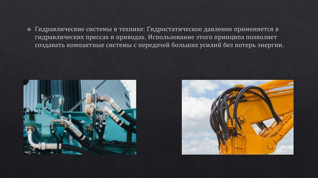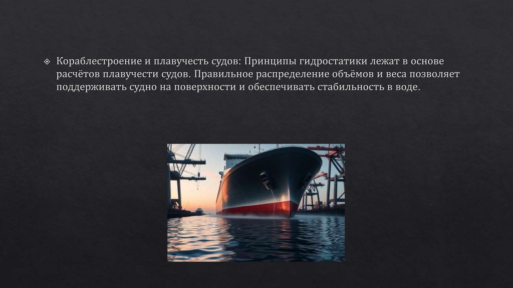 • Проектирование плотин и резервуаров : Гидростатические расчёты позволяют точноопределять давление воды на стены плотин и резервуаров. Это обеспечивает безопасность