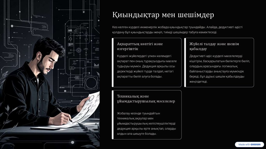 Қиындықтар мен шешімдерКез келген күрделі инженерлік жобада қиындықтар туындайды. Алайда, дедуктивті әдісті