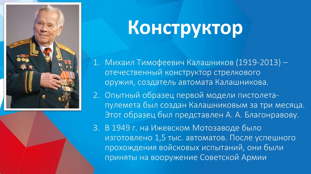 Конструктор1. Михаил Тимофеевич Калашников (1919-2013) –