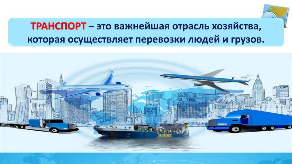 ТРАНСПОРТ – это важнейшая отрасль хозяйства,которая осуществляет перевозки людей и грузов.