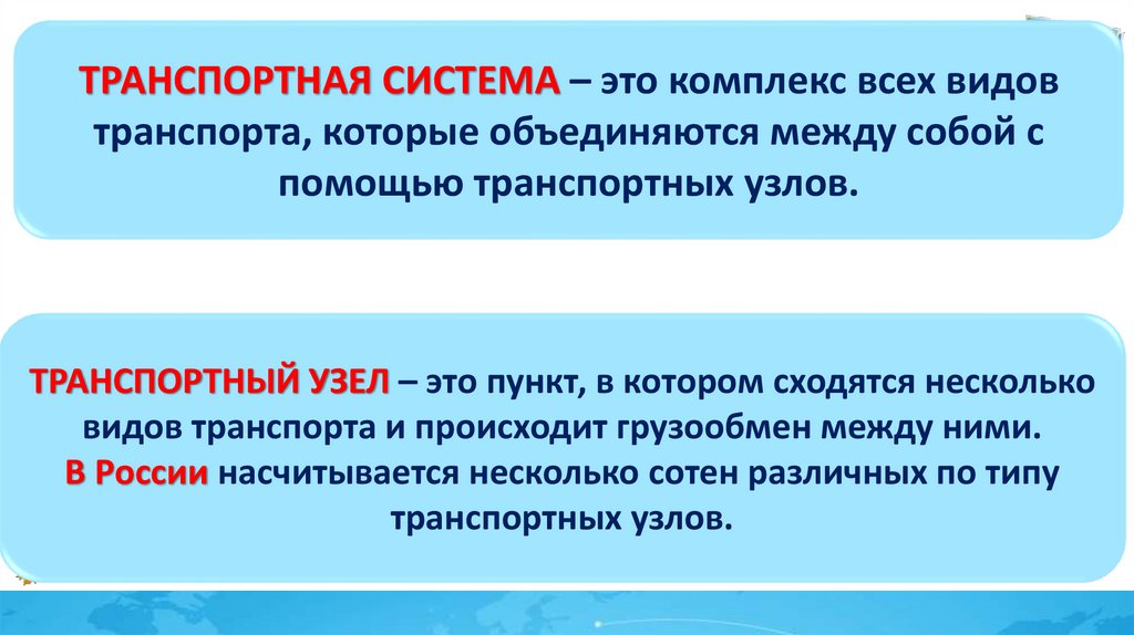 ТРАНСПОРТНАЯ СИСТЕМА – это комплекс всех видовтранспорта, которые объединяются между собой с