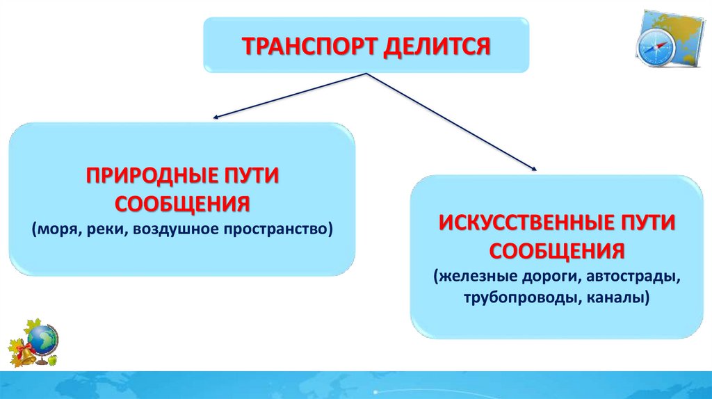 ТРАНСПОРТ ДЕЛИТСЯПРИРОДНЫЕ ПУТИ