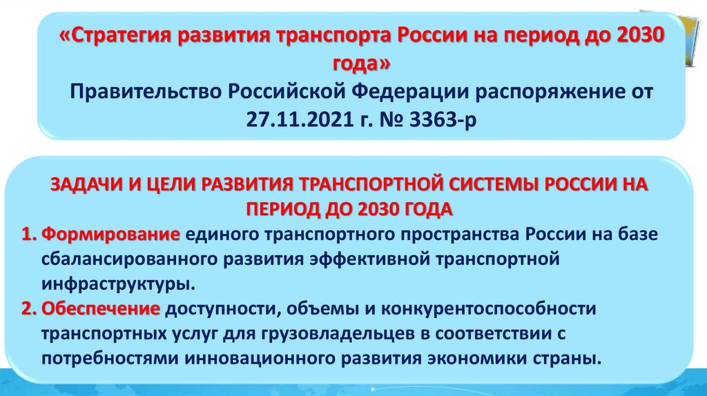 «Стратегия развития транспорта России на период до 2030года»