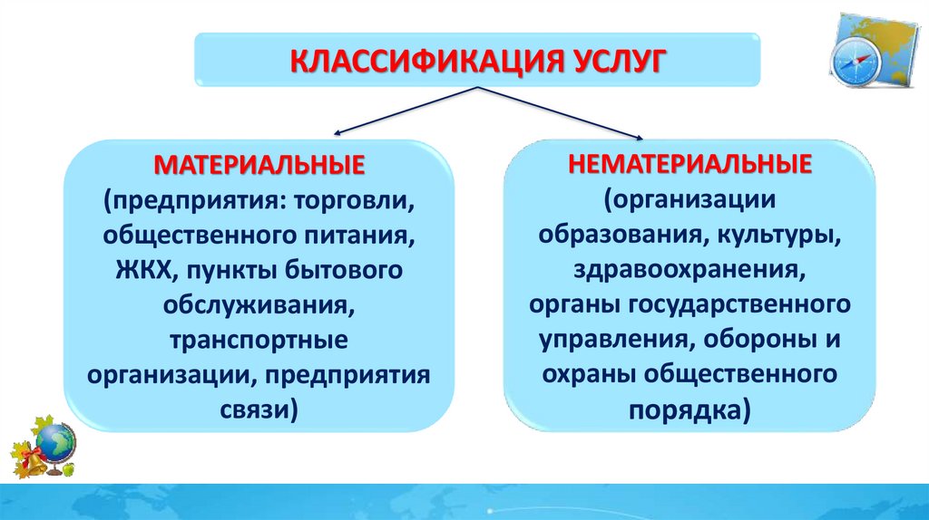 КЛАССИФИКАЦИЯ УСЛУГМАТЕРИАЛЬНЫЕ