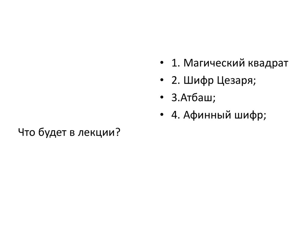 • 1. Магический квадрат• 2. Шифр Цезаря;