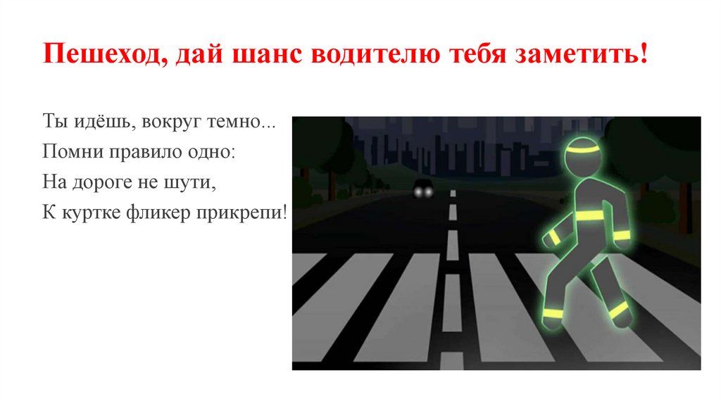 Пешеход, дай шанс водителю тебя заметить!Ты идёшь, вокруг темно...
