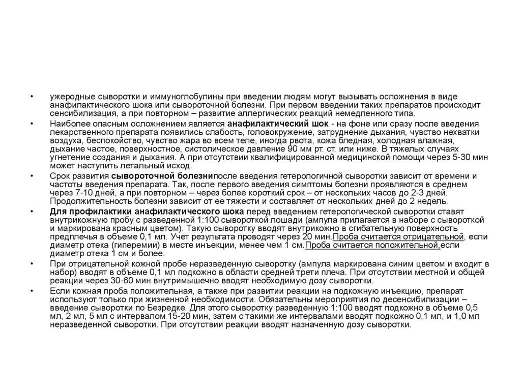 и маркирована красным цветом). Такую сыворотку вводят внутрикожно в сгибательную поверхность