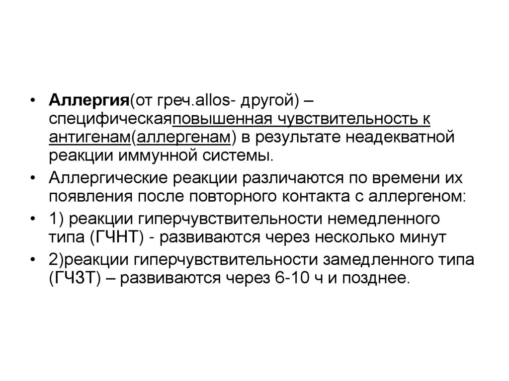 • Аллергия(от греч.allos- другой) –специфическаяповышенная чувствительность к