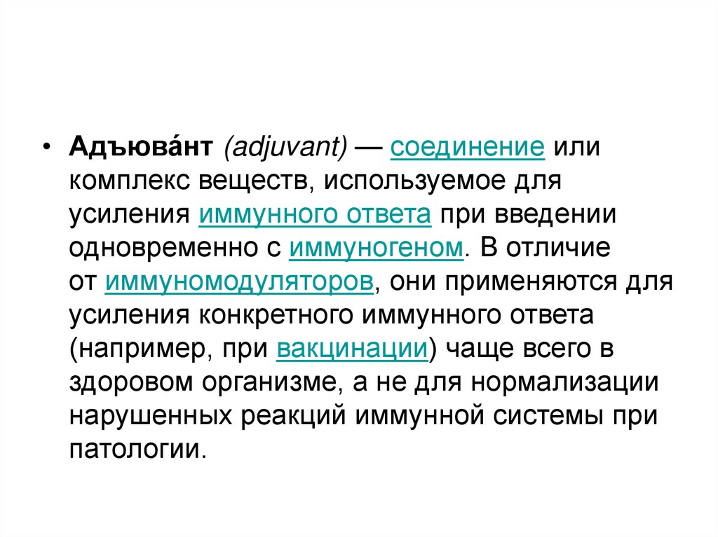 • Адъюва́нт (adjuvant) — соединение иликомплекс веществ, используемое для
