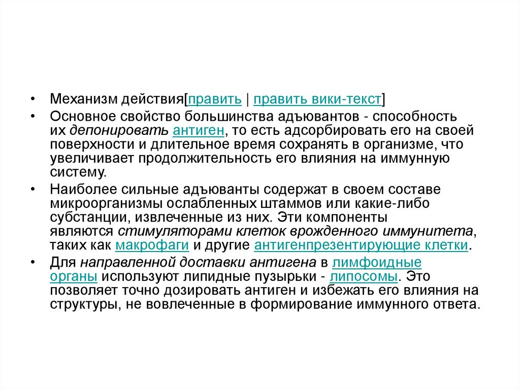 • Механизм действия[править | править вики-текст]• Основное свойство большинства адъювантов - способность