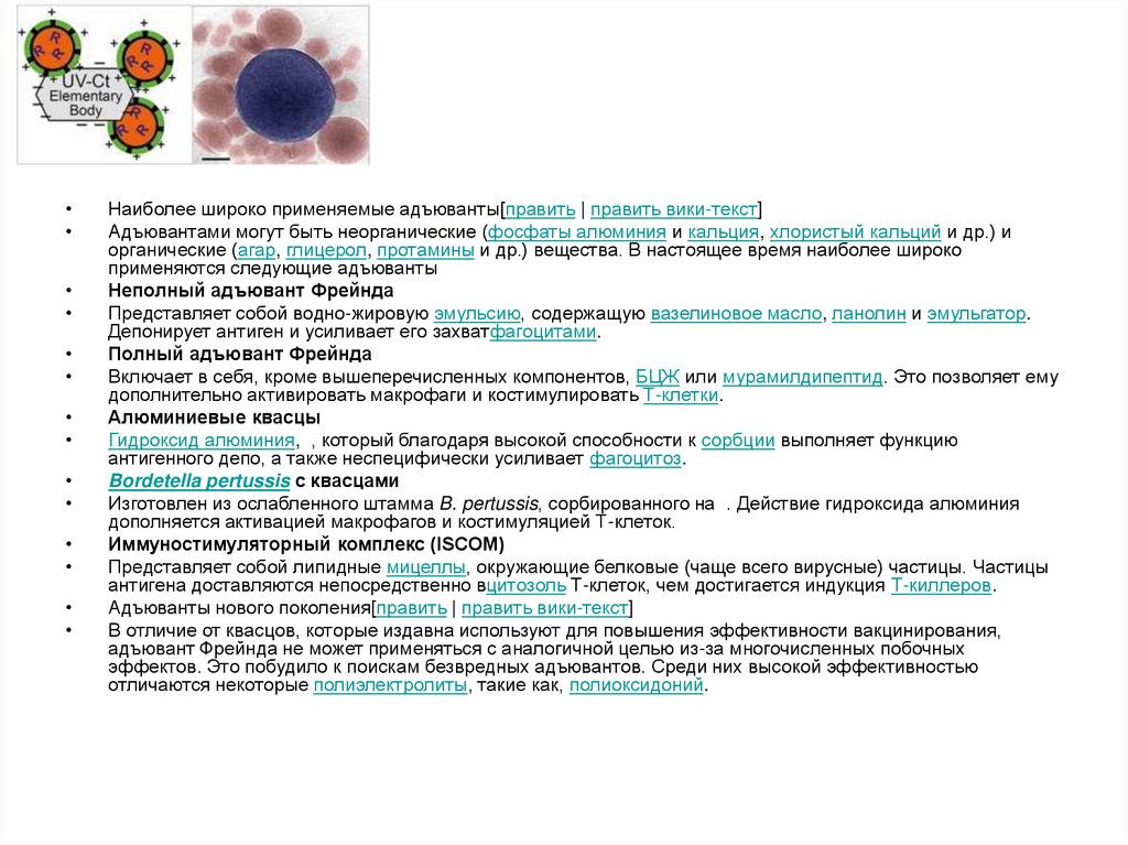 Наиболее широко применяемые адъюванты[править | править вики-текст]