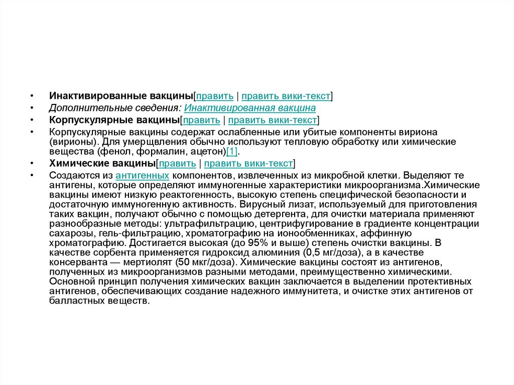 консерванта — мертиолят (50 мкг/доза). Химические вакцины состоят из антигенов,