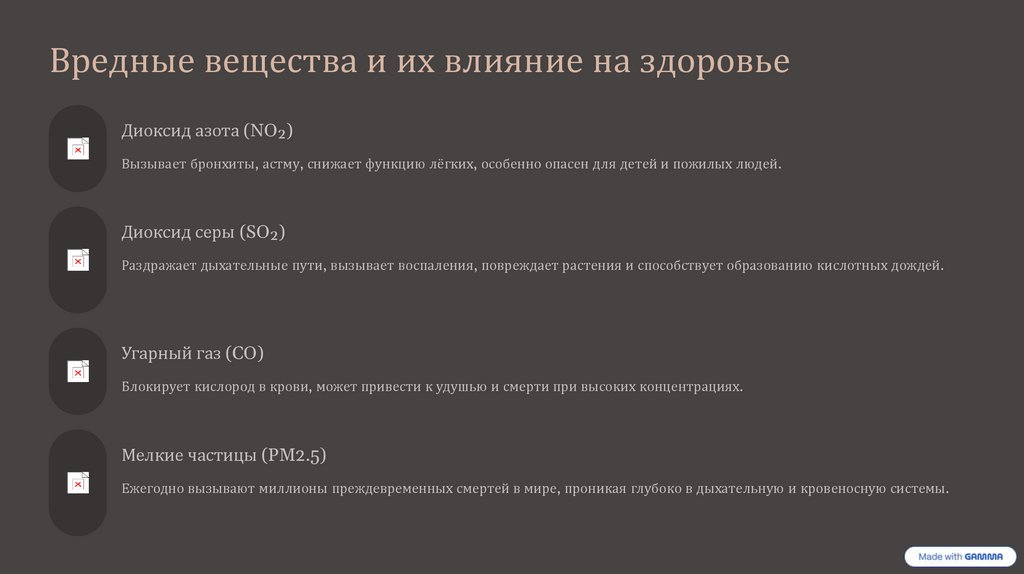 Вредные вещества и их влияние на здоровьеДиоксид азота (NO₂)