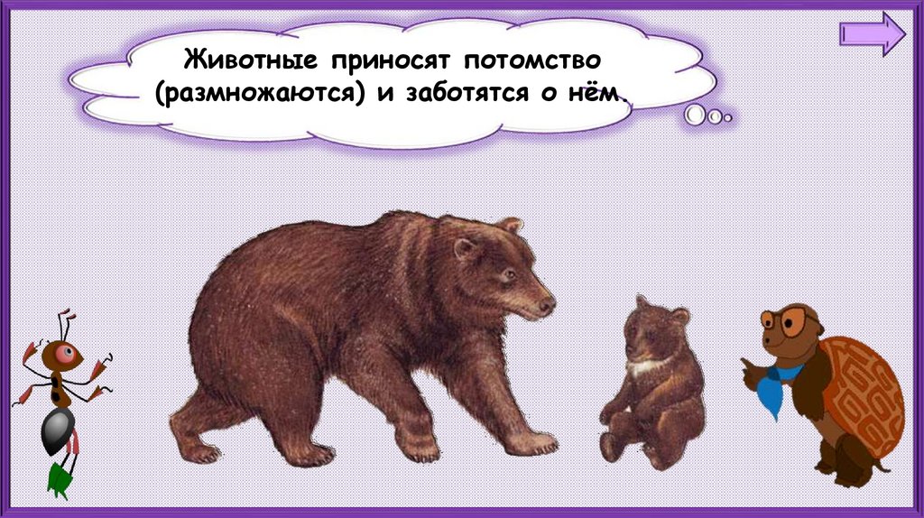 Животные приносят потомство(размножаются) и заботятся о нём.