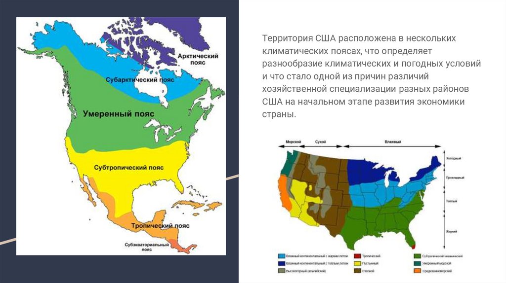 Территория США расположена в несколькихклиматических поясах, что определяет