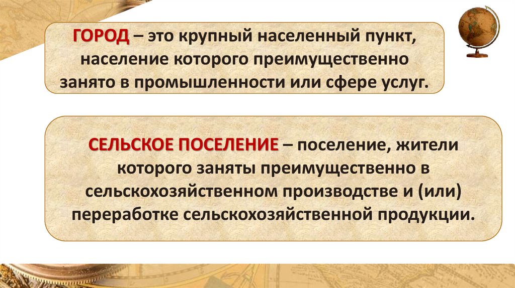 ГОРОД – это крупный населенный пункт,население которого преимущественно