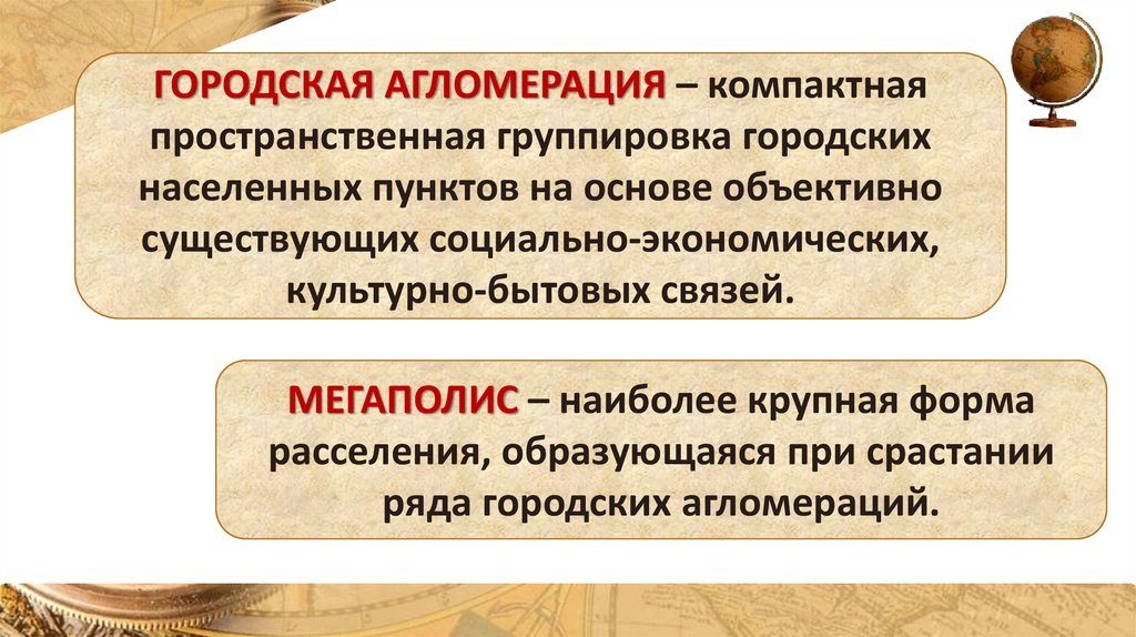 ГОРОДСКАЯ АГЛОМЕРАЦИЯ – компактнаяпространственная группировка городских