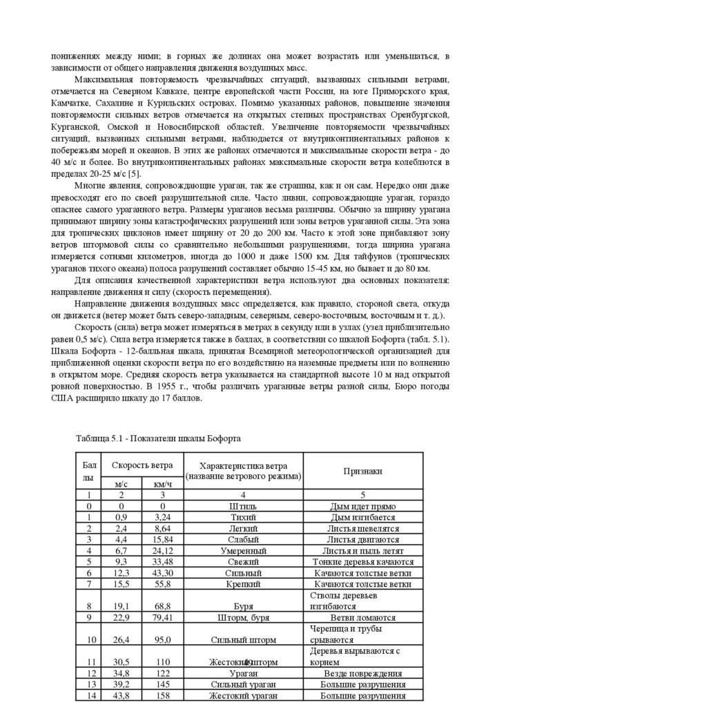 равен 0,5 м/с). Сила ветра измеряется также в баллах, в соответствии со шкалой Бофорта (табл. 5.1).