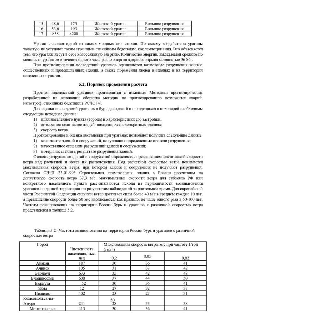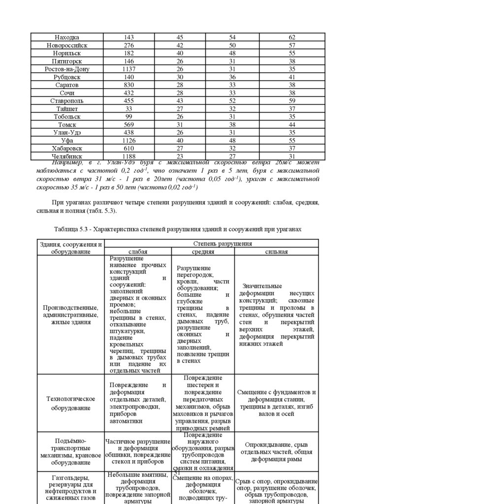 По данным таблицы 5.2 определяем, что ураганы со скоростью ветра 45 м/с случаются в г.