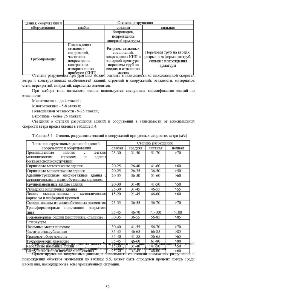 По данным таблицы 5.4 определяем, что кирпичные малоэтажные здания при урагане со