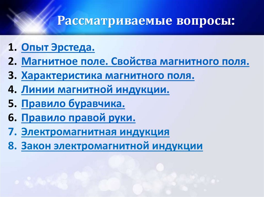 Рассматриваемые вопросы:1. Опыт Эрстеда.