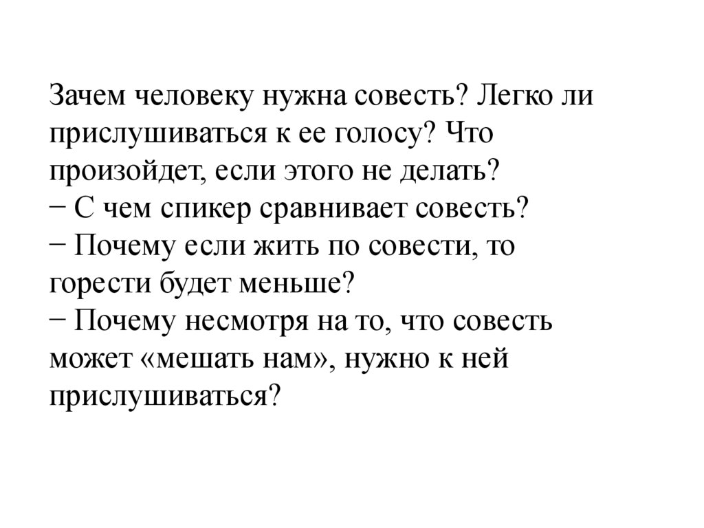 Зачем человеку нужна совесть? Легко липрислушиваться к ее голосу? Что