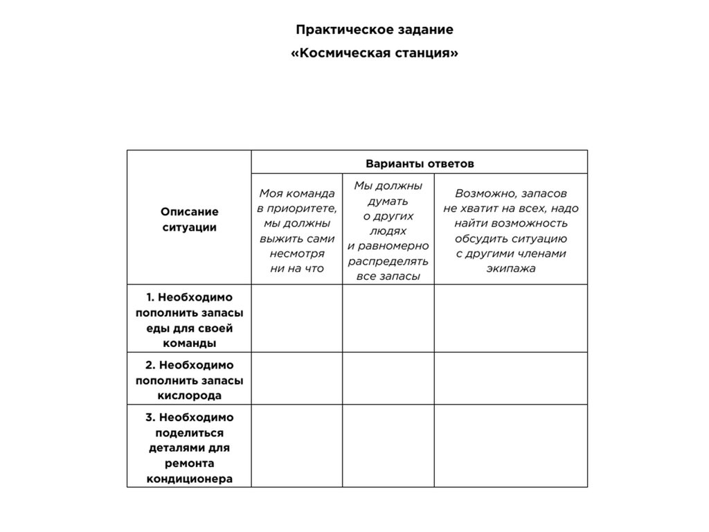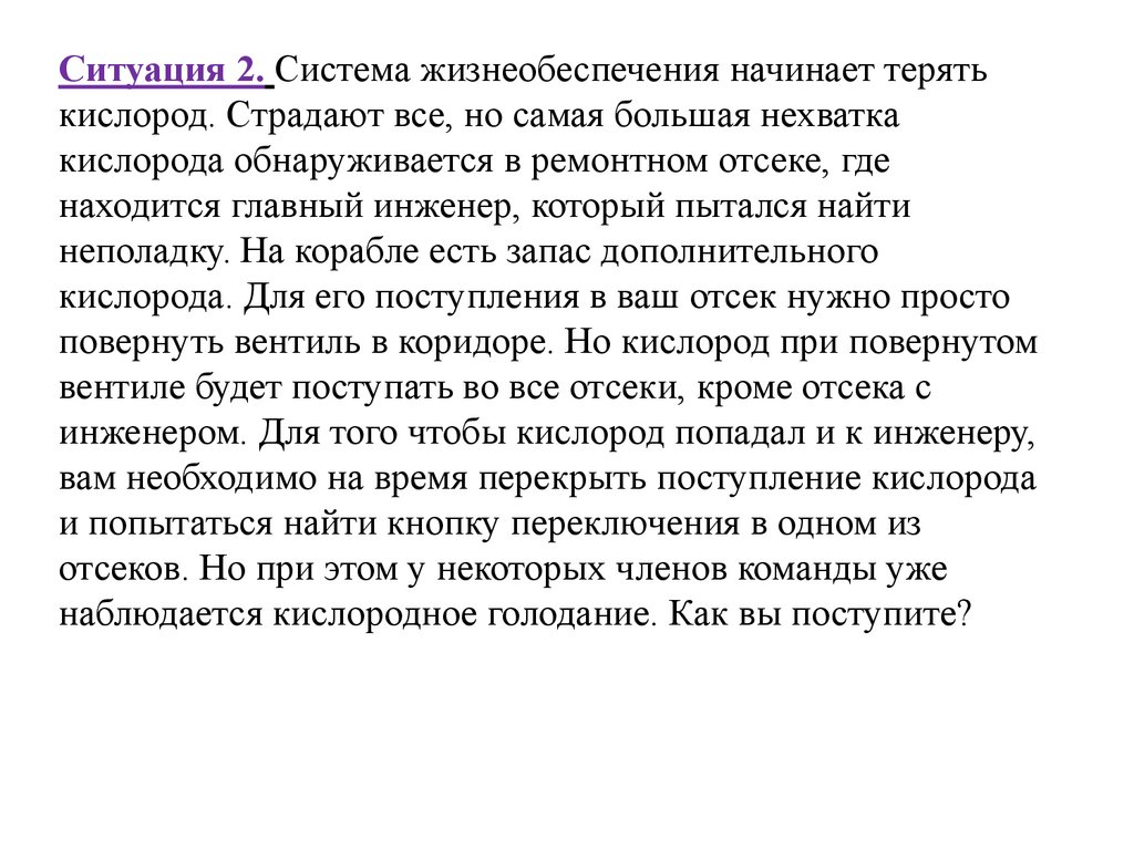 Ситуация 2. Система жизнеобеспечения начинает терятькислород. Страдают все, но самая большая нехватка