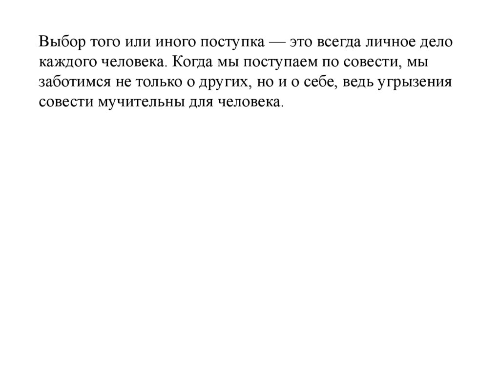 Выбор того или иного поступка — это всегда личное делокаждого человека. Когда мы поступаем по совести, мы