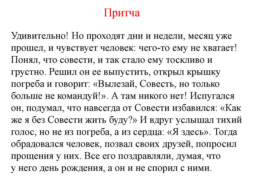 ПритчаУдивительно! Но проходят дни и недели, месяц уже