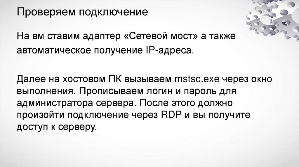 Далее на хостовом ПК вызываем mstsc.exe через окно