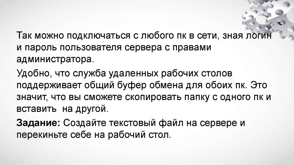 Так можно подключаться с любого пк в сети, зная логини пароль пользователя сервера с правами
