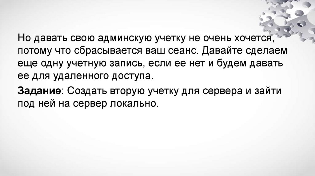 Но давать свою админскую учетку не очень хочется,потому что сбрасывается ваш сеанс. Давайте сделаем