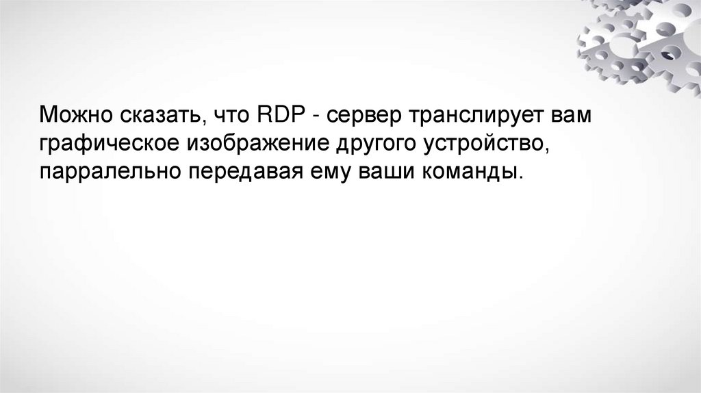 Можно сказать, что RDP - сервер транслирует вамграфическое изображение другого устройство,