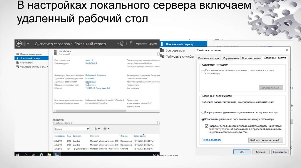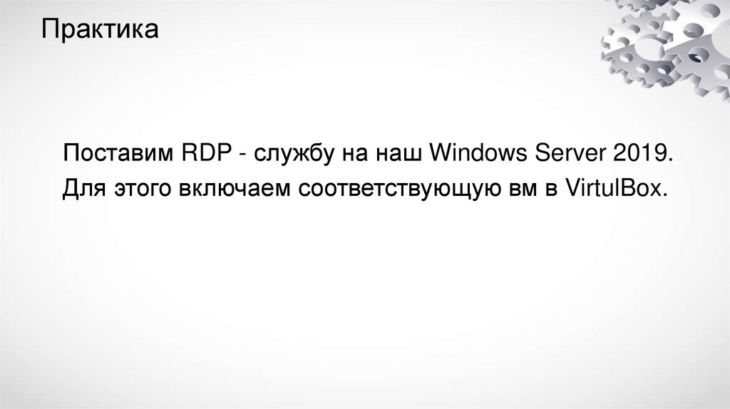 ПрактикаПоставим RDP - службу на наш Windows Server 2019.