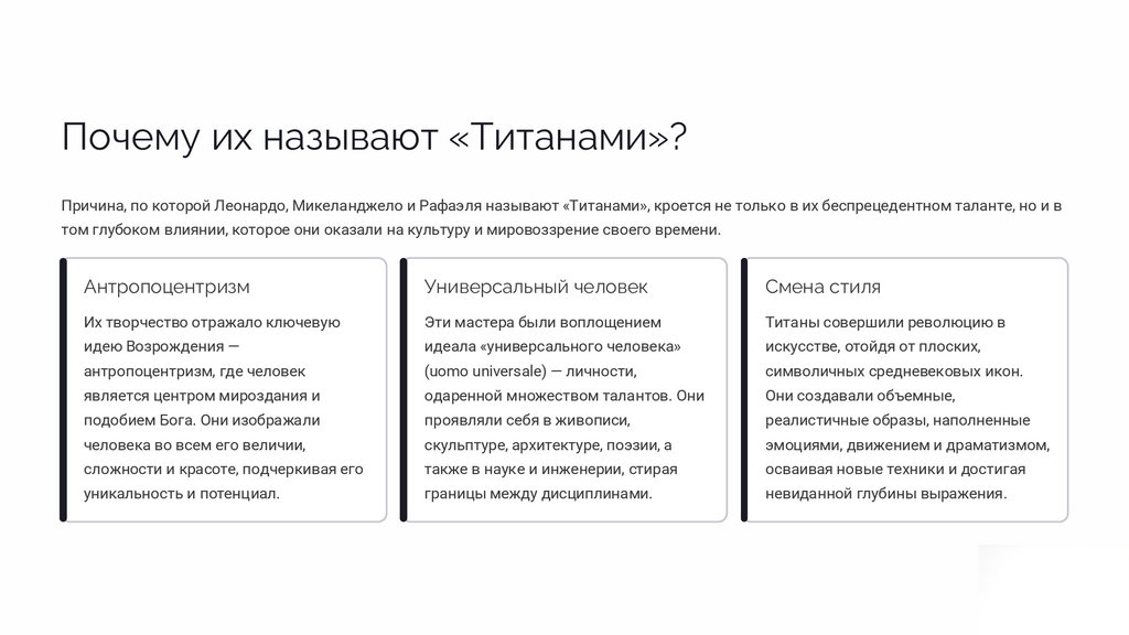 Почему их называют «Титанами»?Причина, по которой Леонардо, Микеланджело и Рафаэля называют «Титанами», кроется не только в их беспрецедентном таланте, но и в