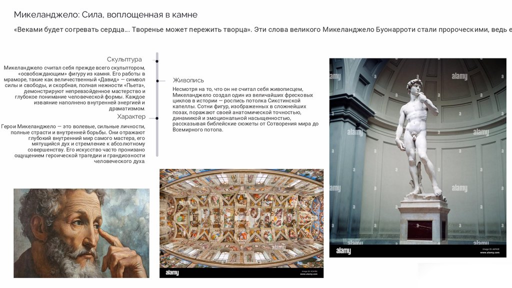 Микеланджело: Сила, воплощенная в камне«Веками будет согревать сердца... Творенье может пережить творца». Эти слова великого Микеланджело Буонарроти стали пророческ ими, ведь е