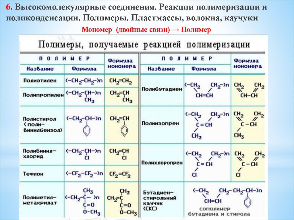 6. Высокомолекулярные соединения. Реакции полимеризации и