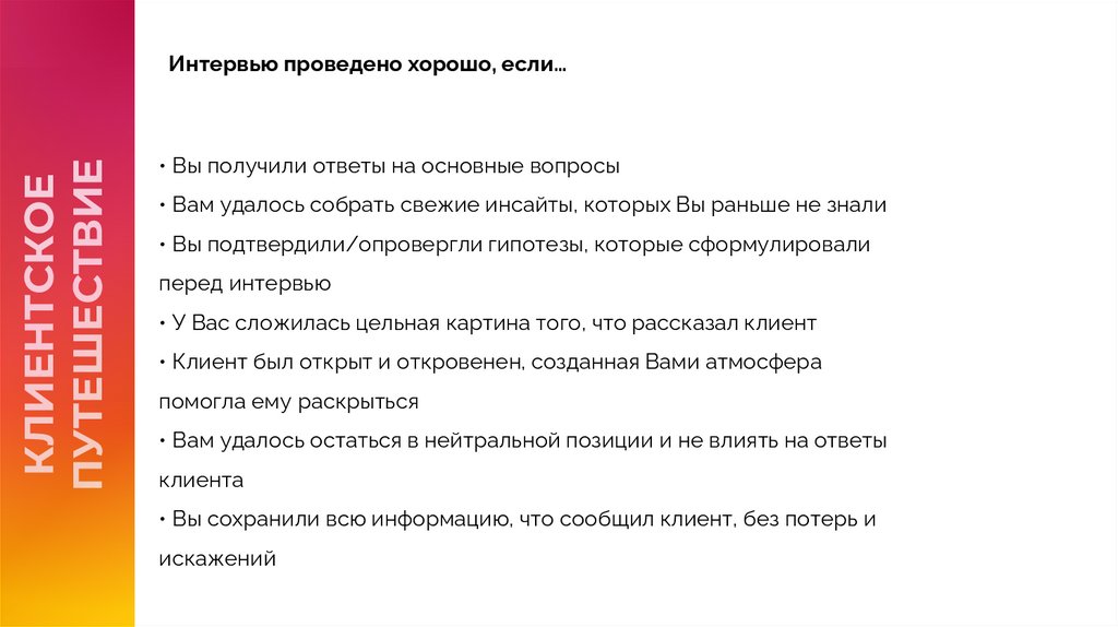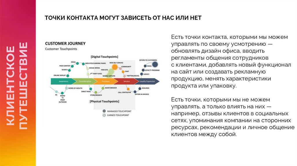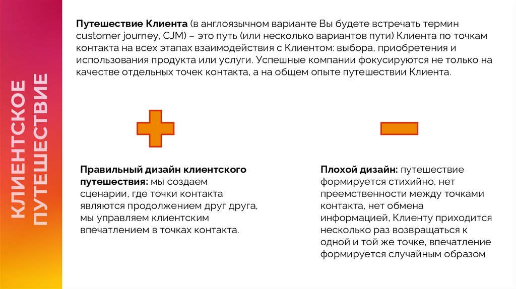 качестве отдельных точек контакта, а на общем опыте путешествии Клиента.