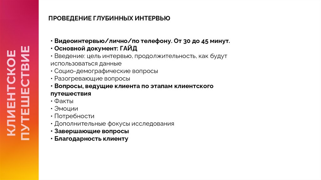 ПРОВЕДЕНИЕ ГЛУБИННЫХ ИНТЕРВЬЮ