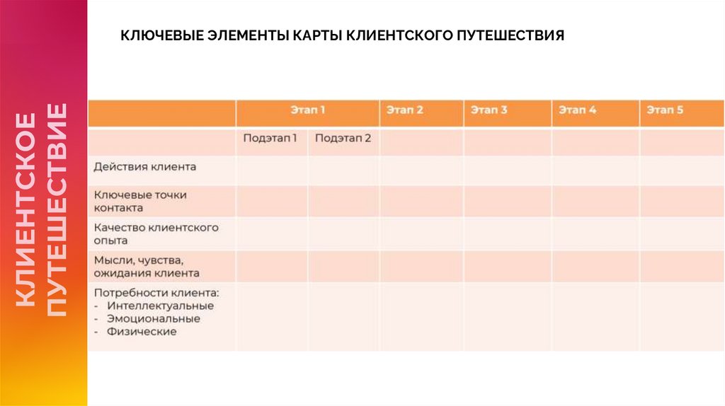 КЛЮЧЕВЫЕ ЭЛЕМЕНТЫ КАРТЫ КЛИЕНТСКОГО ПУТЕШЕСТВИЯ