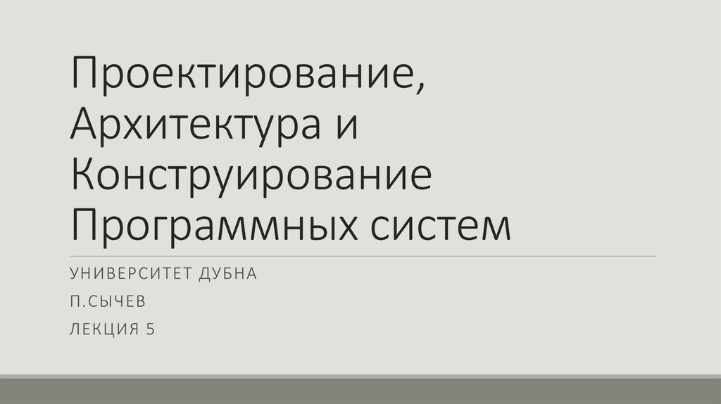 1. Проектирование, Архитектура и Конструирование Программных систем