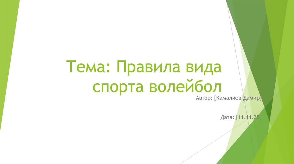 Волейбол — это командный вид спорта, в котором два состава по шестьигроков (в классическом волейболе) соревнуются, перебрасывая мяч