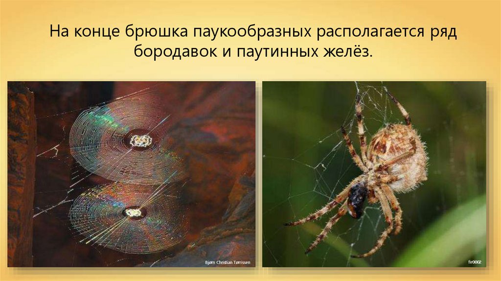 На конце брюшка паукообразных располагается рядбородавок и паутинных желёз.