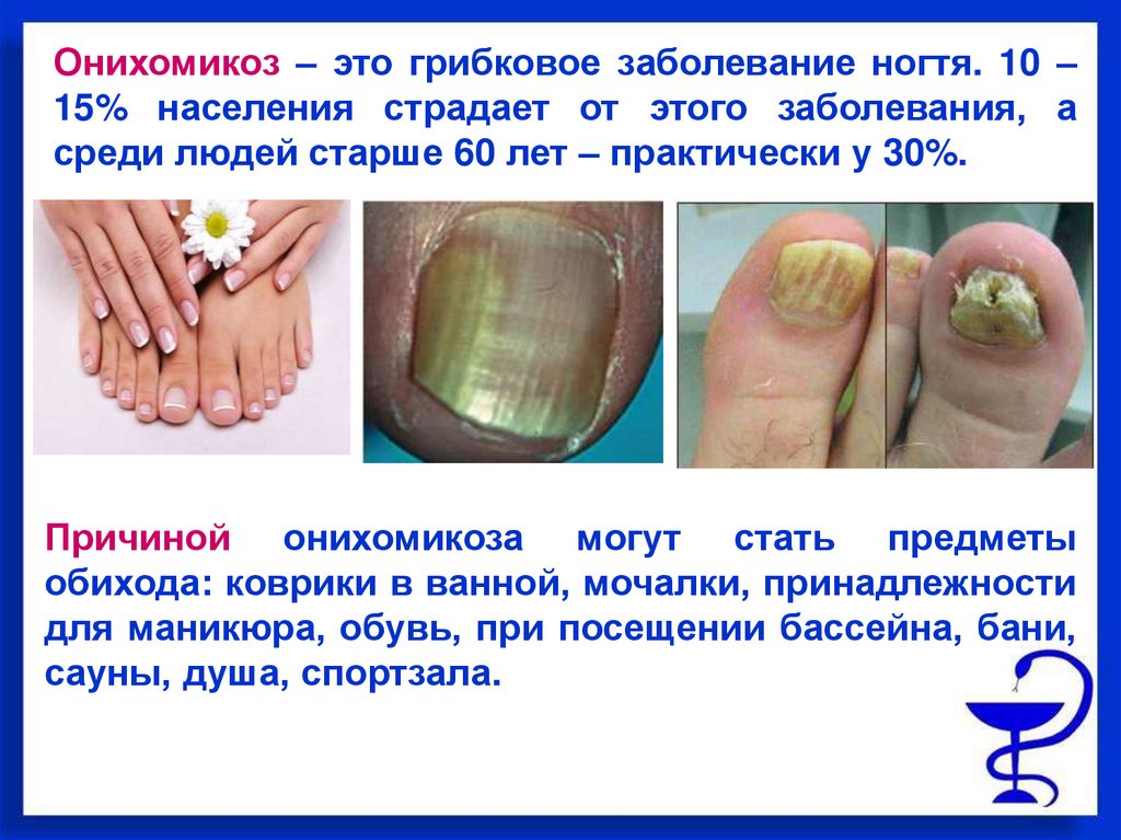 Онихомикоз – это грибковое заболевание ногтя. 10 –15% населения страдает от этого заболевания, а