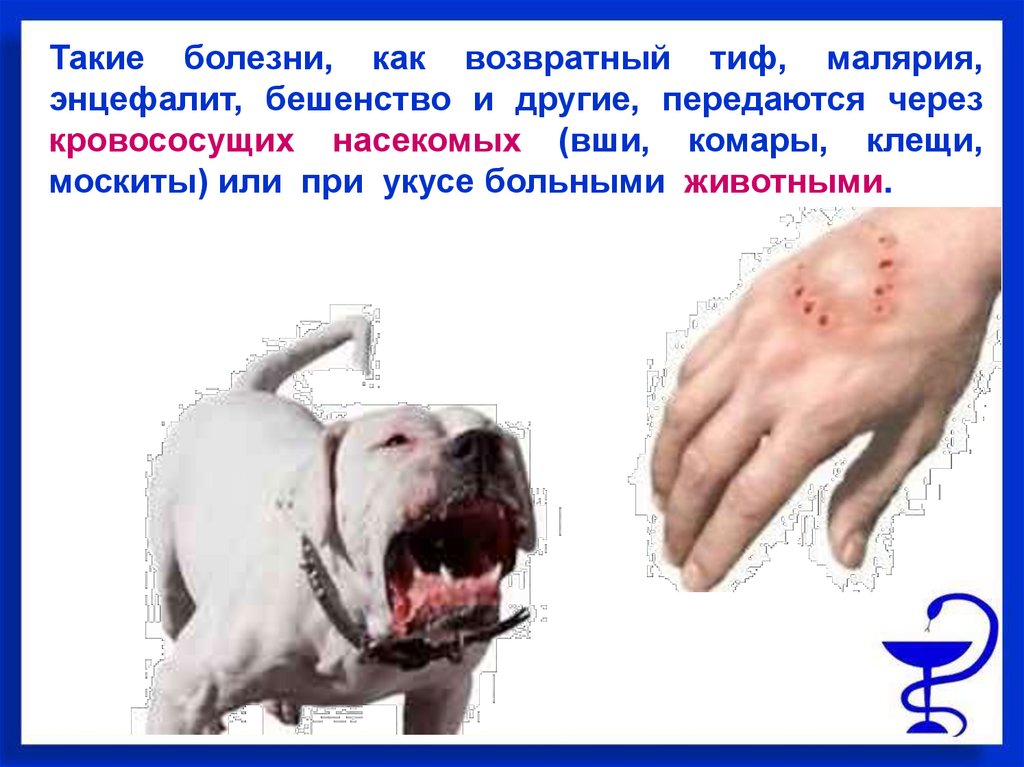 Такие болезни, как возвратный тиф, малярия,энцефалит, бешенство и другие, передаются через