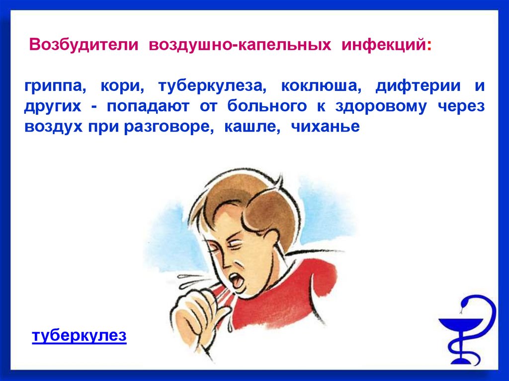 Возбудители воздушно-капельных инфекций:гриппа, кори, туберкулеза, коклюша, дифтерии и