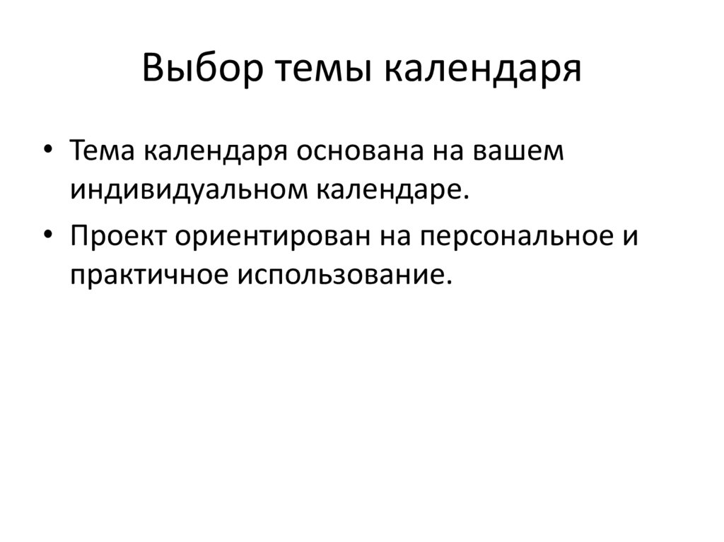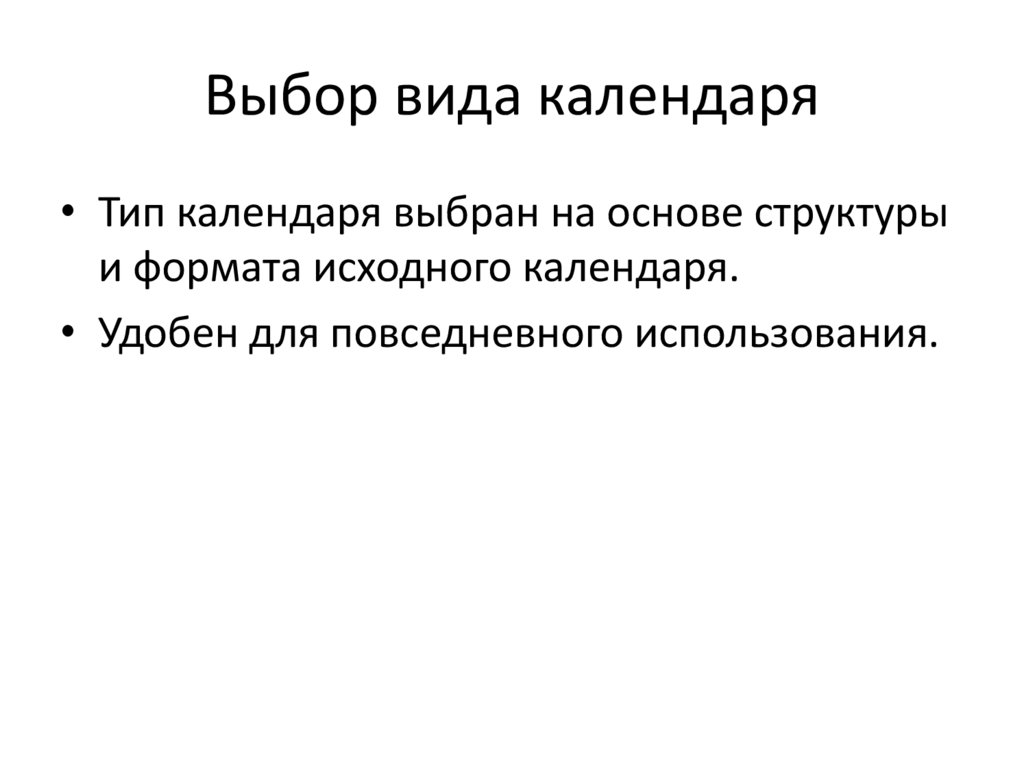 Выбор вида календаря• Тип календаря выбран на основе структуры
